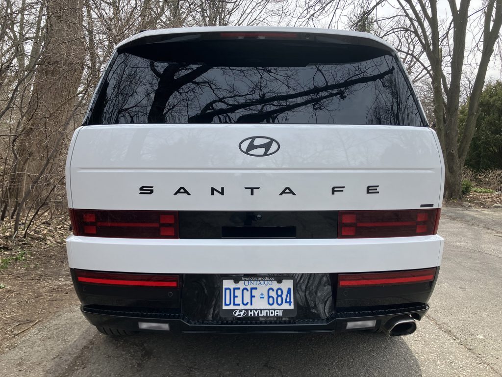 Picking up Gus’s middle- and vintage-aged relatives from Pearson airport, the Santa Fe did offer what modern car reviewers euphemistically refer to as ingress and egress challenges or benefits — depending on how deep into the vehicle you’re venturing. The Calligraphy’s middle bucket seats slide forth and back within a track, allowing access to the third row which can be flattened if you’re not stuffing cousins back there. The rear bench seats two, offering minimal leg-beneath-hips space for adults, but plenty of room for child seats. Cousin Dave is tall and retired but still considered the middle generation, young enough to waddle his way to the very back where, after a seven-hour plane ride, he rested his chin on his knees while experiencing Toronto’s legendary traffic in slowest motion.