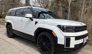 Picking up Gus’s middle- and vintage-aged relatives from Pearson airport, the Santa Fe did offer what modern car reviewers euphemistically refer to as ingress and egress challenges or benefits — depending on how deep into the vehicle you’re venturing. The Calligraphy’s middle bucket seats slide forth and back within a track, allowing access to the third row which can be flattened if you’re not stuffing cousins back there. The rear bench seats two, offering minimal leg-beneath-hips space for adults, but plenty of room for child seats. Cousin Dave is tall and retired but still considered the middle generation, young enough to waddle his way to the very back where, after a seven-hour plane ride, he rested his chin on his knees while experiencing Toronto’s legendary traffic in slowest motion.